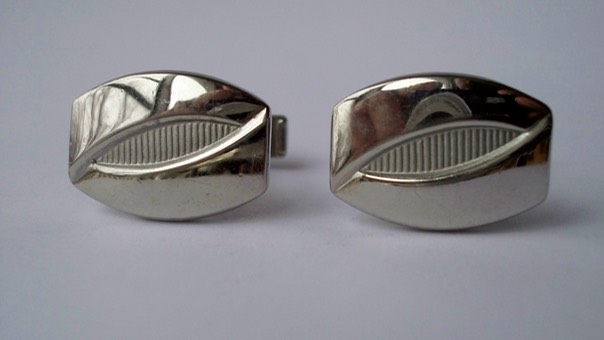 3299 c. 1950s White polished metal with contrasting coin edge center. No maker’s mark. Small/Med size, approx. ½” x ¾” Price: $15