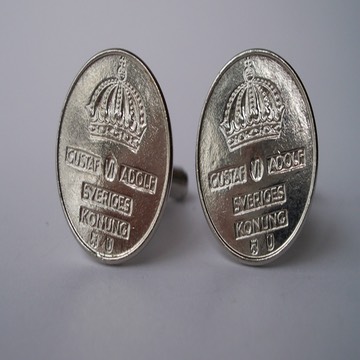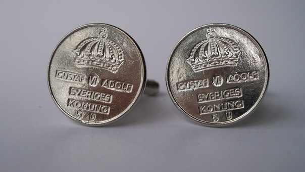 3333 c. 1962 Swedish Konung coin dufflinks. Marked ‘ORE’ on back. I believe that the coin is bronze and plated. Very nice condition, indeed! Small, c. 5/8”. Price: $25