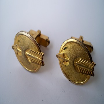 3392 c. 1940s gold tone oval ‘arrow’ cufflinks. Evidence of wear as picture indicates, but they are much nicer and more polished than picture suggests. Besides, I had to include them- how could I not? No maker’s mark. Size c. 1” x 5/8”. Price: $20