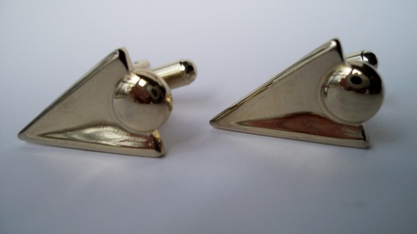 3426 c. 1950s Moderne stylized ‘arrow head’ silver tone cufflinks. No maker’s mark. Small size, c. 7/8” x 5/8. Price: $20