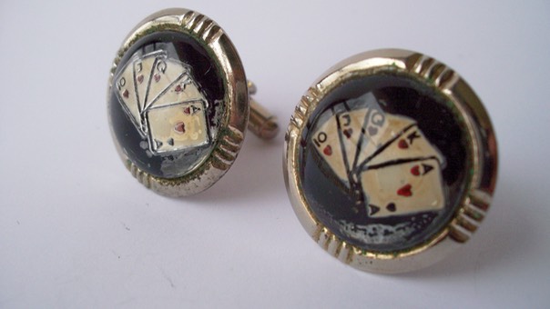 3446 c. 1950s Novelty gambling cufflinks show some wear, but they’re cool. Might bring good luck next time in Vegas. Size: Medium. Price: $20