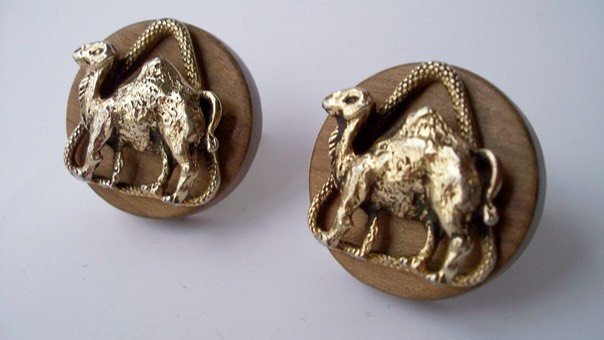 3451 c. 1950s Swank Linkwood cufflinks featuring exotic wood and camel. Size: Very Large, 11/4´in diameter. Price: $35