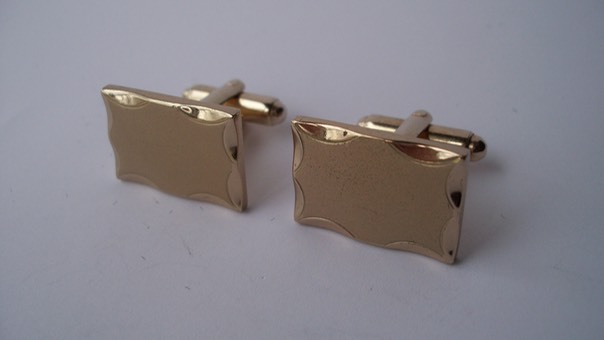 3457 c. 1950s rectangular gold tone cufflinks. Satin finish with polished scalloped border. Elegant and nicer than picture- minimal wear. Size c. 7/8”x5/8” Price: $20