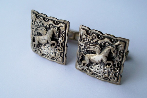4384 c. 1960s Fenwick and Sailor Pegasus embossed sterling silver cufflinks. Lovely and high quality; Fully marked on back. Medium/Large, c. ¾” square. Price: $85