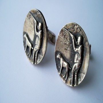4386 c. 1960s Fenwick and Sailor Hunter and Dog sterling silver cufflinks. Very nice quality. Fully marked on back. Medium/Large, c.7/8” diameter. Price: $85