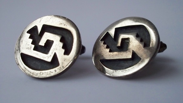 3273 c. 1940s Hecho abstract Mexican sterling silver cufflinks (fully hallmarked on back of one link.) Med/Large. Approx. 7/8” diameter. Price: $65