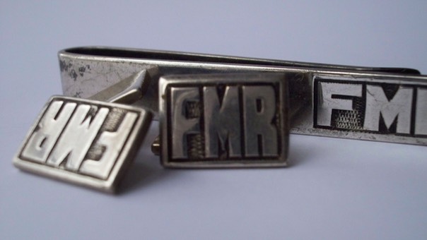 3275 c.1940s sterling silver cufflinks and tie bar. Bold initials ‘FMR’ on each face. No additional maker’s markings. Face of cufflink 5/8” x ½”. Tie bar 25/” long. Price: $65