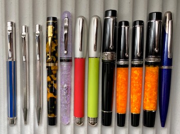 Delta Y2K fountain pen. Aluminum cap, soft touch red barrel. I love the styling. Fine steel nib. Excellent condition. Cartridge/Converter included……………………………………………………………………………..$125 |