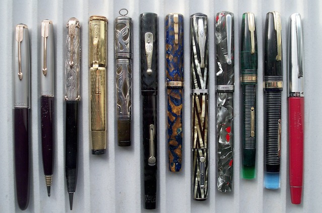 9 | c. 1930s Waterman No. 94 in steel gray marbled celluloid w/red flecks, excellent cond., $165 |