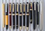 Pelikan 150th Anniversary fountain pen, (1838-1988) barley corn gold plated finish, green visualated lower barrel, desirable difficult to find pen, 2 tone Medium semi-flex gold nib, West Germany, $595 |