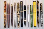 10 | Sold c. 1929 National Pen Co.? (only Bbl. marked ‘The Dependable Pen”) ‘Mandarin Yellow’ celluloid, 14k warranted nib, LF ex. cond., $165 |
